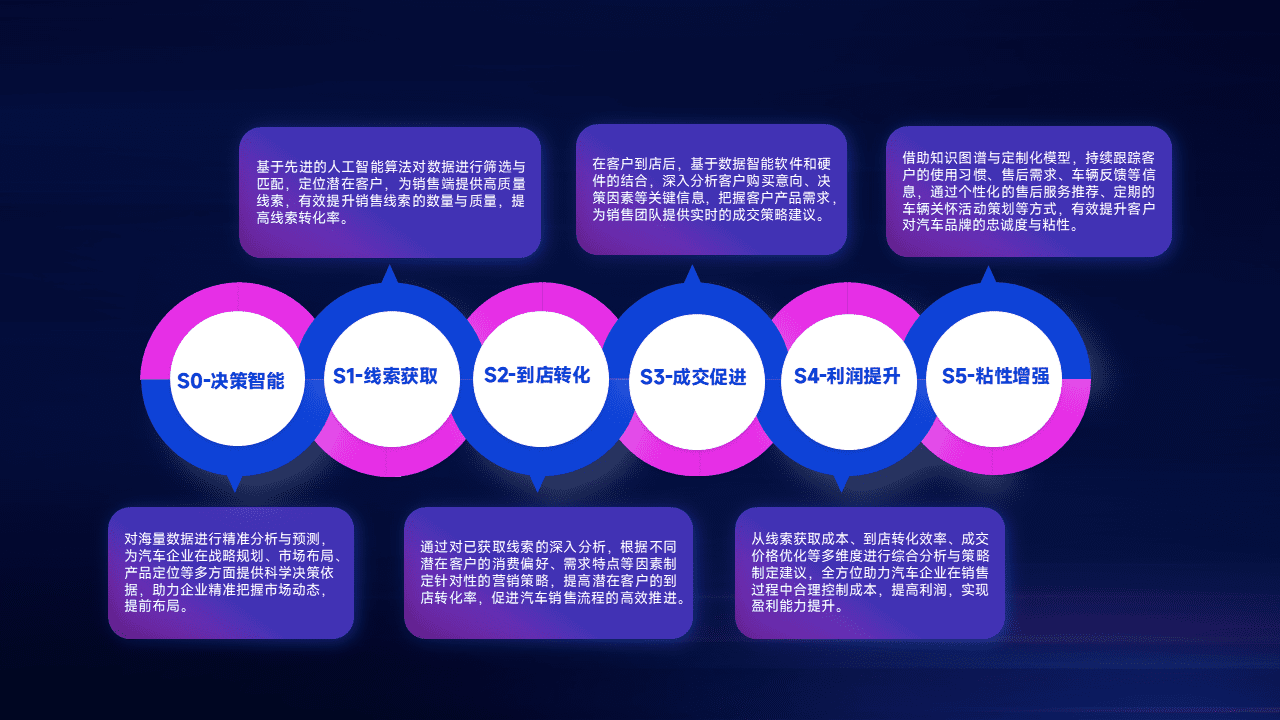 通过拓宽潜在客户来源、、、优化线索分配并提高到店转化率,,,以增强销售效率。。。同时,,,利用线索数据不断优化分析模型,,,,有效提升转化率,,扩大营销影响力。。